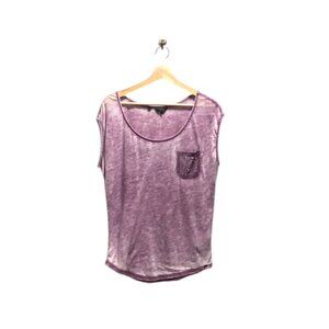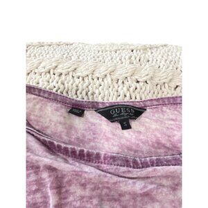 Guess Y2K Slouchy Burnout Rhinestone Pocket Tee Shirt Purple Size S Casual Cute