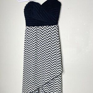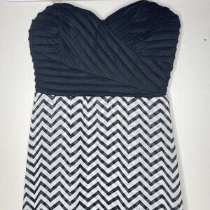 Guess Y2K Small Black White Strapless Sweetheart Flowy Chevron High Low Dress