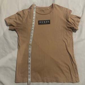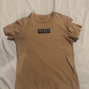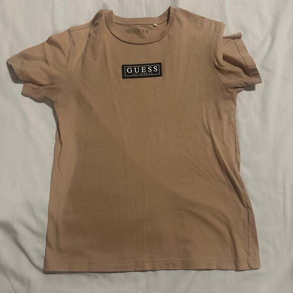 Guess Los Angeles Box Logo T-Shirt in a versatile tan/khaki color, Size Small.