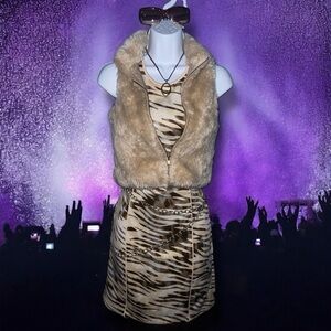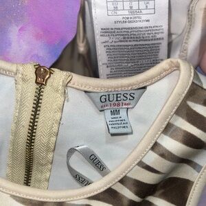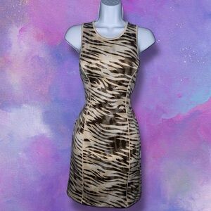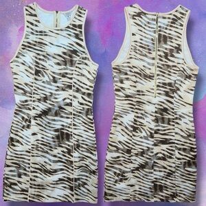 🐁 Item Description: GUESS Y2K Style Neutral Tone Animal Print Sleeveless Bodycon Mini Dress w/ Gold Tone Branded Zipper Back Closure 🐁