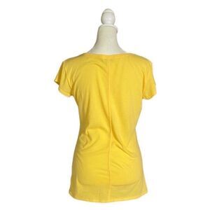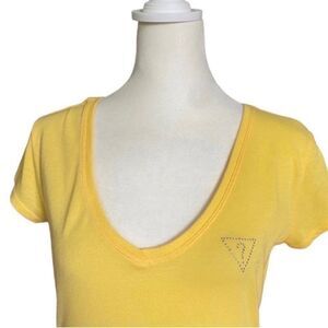 Guess Y2K Vibrant Yellow w/ Rhinestone Logo V-Neck T-Shirt Size Medium