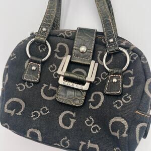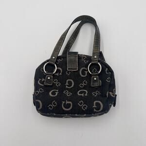 Guess Y2K Vintage Mini Micro Shoulder Monogram Denim Flap Purse Bag Black Gray