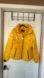 Bright yellow puffer jacket. High collar. Front zipper closure. Side pockets.