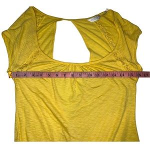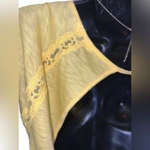 This previously loved top is a beautiful yellow and is backless! It has lace features in the front and the back. Wear it backless or use it to layer!