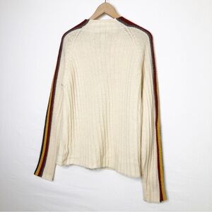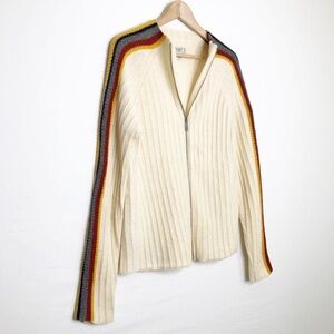 Guess Zipfront, ribbed sweater, with stripes down the shoulder and sleeves.