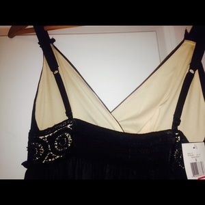 Nude lining with sheer black overlay. Can dress up or be casual. Comfortable, cute. Pretty detail.