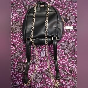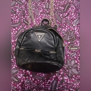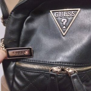 black leather Guess backpack, small in size, very durable & fashionable, Guess emblem on front of pack & Guess logo on a gold plate on main zipper handle of the pack...if you need more details...please contact me on poshmark platform