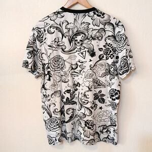 Guess black and white skull and roses short sleeve shirt. Red guess logo. Like new!