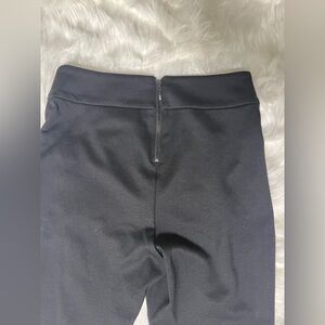 Black legging with leather strip accent on front. In great condition. Versatile and can work for biker, goth or classic contemporary look. Measurements in photos.