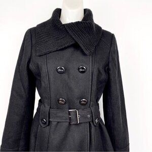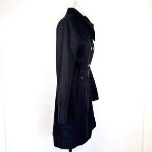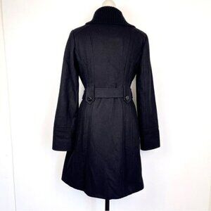 Guess black wool blend tailored belted trench coat size Small