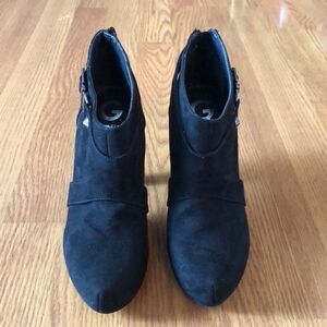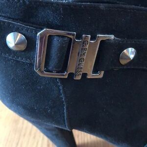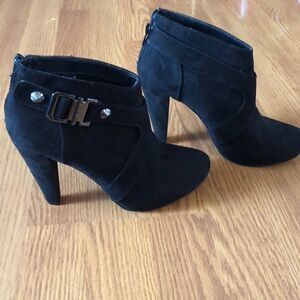 Like new Guess zippered black booties with silver buckle and silver spikes. Sz 7M