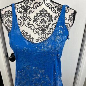 Guess blue tank top with metallic silver and rhinestone embellishments