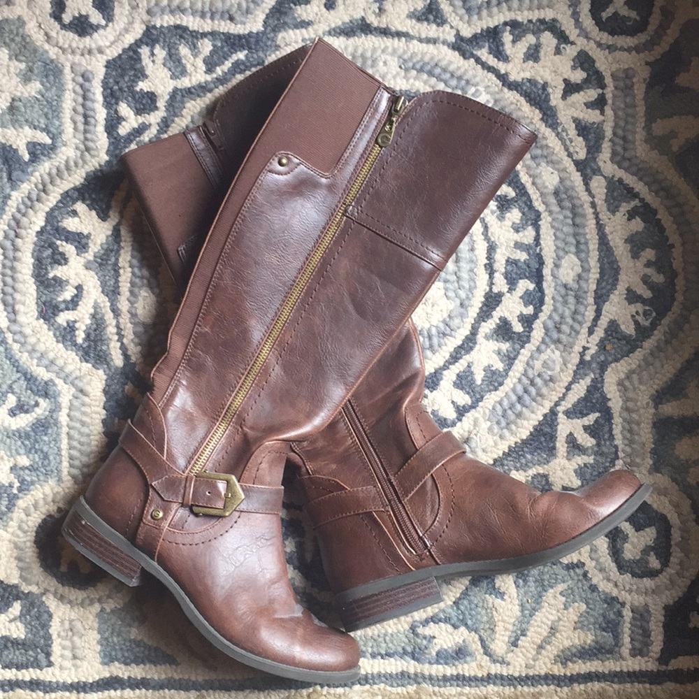 Worn guess boots. Lightly used. Stretchy for calf size, and very comfortable.