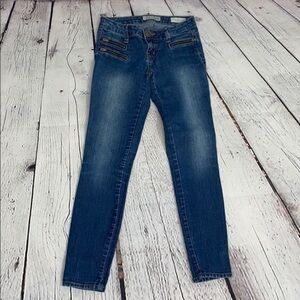 Well loved Guess brand Maxine fit skinny jeans. Zipper detail on front. Size 24