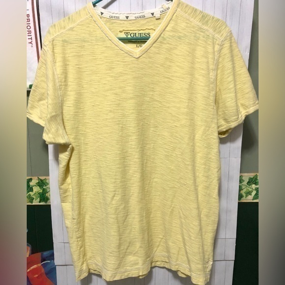 ♈️Guess brand pastel yellow v-neck short sleeve shirt🍂