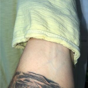 Style short sleeve, v-neck, raw edge hem & sleeves