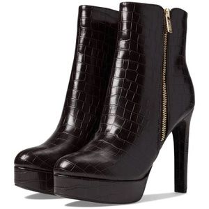 Guess brown croc embossed platform stiletto ankle boots size 10