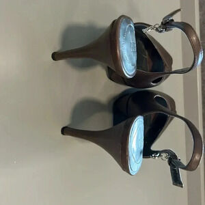 Rarely worn Guess heels. Brown with small scoffs you can hardly see. (See pictures) Size 7M. Fancy Guess charm on each shoe.Very