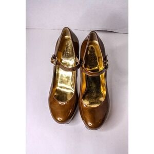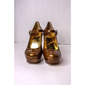 Elegant brown heels with a glossy finish. Features a stylish strap and high stiletto heel. Perfect for any occasion.