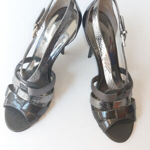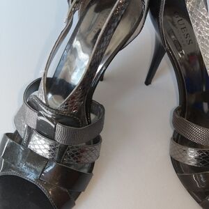 Guess by Marciano Peep Toe Heels, with side buckle, Size 8, gently worn once, great condition , see pics for wear. No rips, tears or stains.