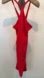 This striking red dress from Guess by Marciano features a sleeveless, halter neckline that elegantly frames the shoulders. Its bodycon style hugs the figure, creating a sleek silhouette perfect for a cocktail night out. The backless design adds a touch of allure, making it a standout piece for any evening occasion.