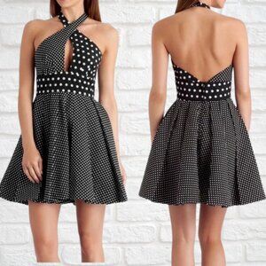 Guess by Marciano Retro Glam Polka Dot Halter Dress Black White A-Line Pin-up 8