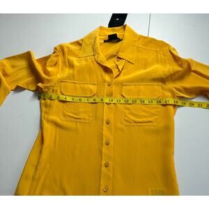 Guess by Marciano Top Blouse Womens XS Yellow Long Sleeve Button Up Silk Preppy