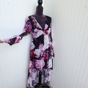 Guess by Marciano Womens Purple Black Hi Low Multi Fushion Sheer Long Sl Dress 4