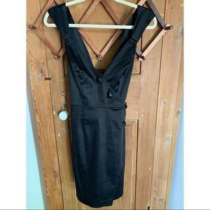 Guess by Marciano black wrap dress with square button closure detail and buttoned cross straps in back. Fully lined.