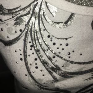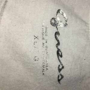 In guc, no stains or rips. 100% cotton. Measures approximately 20 inches from armpit to armpit and 19 inches from shoulder to hem. Smoke and pet free home.