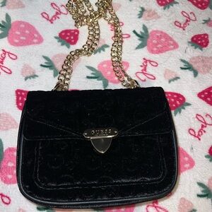 Elegant black shoulder bag featuring a luxurious gold chain. Perfect for any occasion.