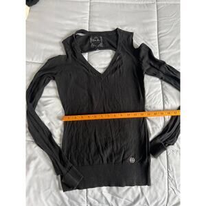Guess distressed, cold shoulder black sweater 100% con size medium