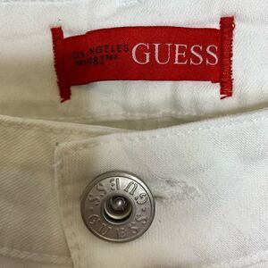 •Features: White skinny ankle jeans. Signature triangle on back pocket. Fabric has slight stretch