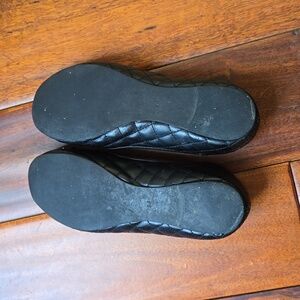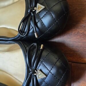 black guess flats. black with gold accents. adorable slip ons.