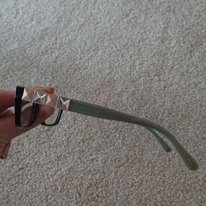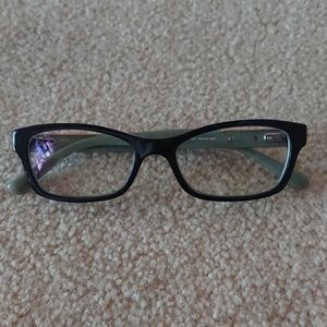 Really pretty black frames with rhinestones on the sides. Comes with original case (tiger print) and microfiber wipe. Great condition.