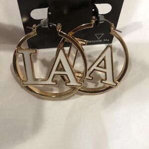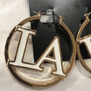 Guess gold plated white enamel LA monogram Guess monogram hoop earrings new