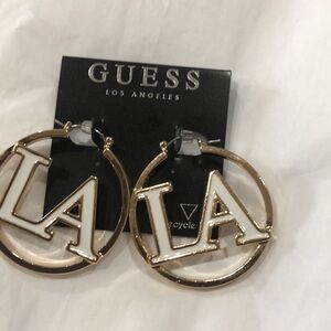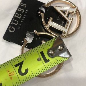 Guess gold plated white enamel LA and Guess monogram hoop earrings new