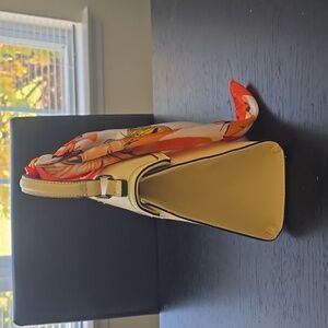 Brand new, never used. Yellow Guess handbag with scarf. 8.5"w x 4.5"d x 10"h.