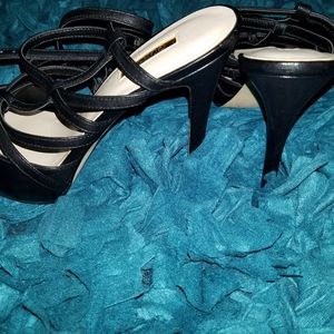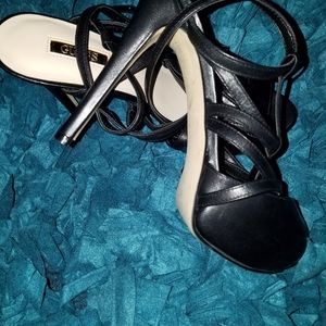 Sexy Guess strappy platform black size 7 heels brand new with out box Mark's on bottoms from trying on