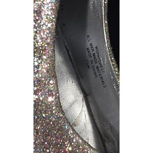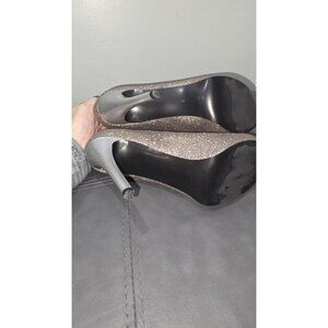 These Guess high heels shoes are perfect for a special occasion like a wedding or New Year's Eve party. The peep toe design with glitter accents adds a touch of glamour, while the ultra-high platform heel provides added style and elegance. Made with synthetic upper material and leather lining, these size 7.5M heels are designed for comfort and durability. The silver color and glittery pattern make them a standout choice for any fashion-forward woman looking to make a statement at her next event. No box.