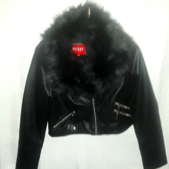 guess jacket faux fur collar