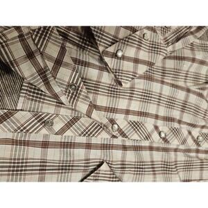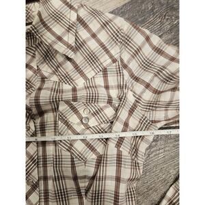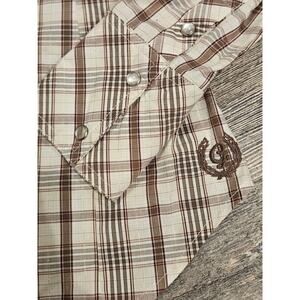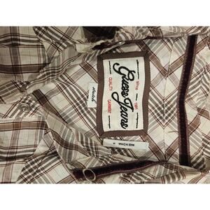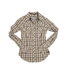 Guess jeans snap button babydoll button down shirt womens small brown gold y2k