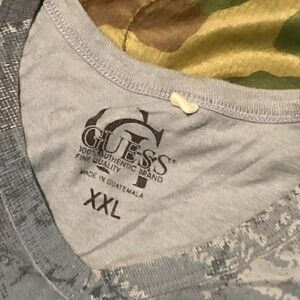 Guess jeans y2k style v-neck tee powder blue cotton grunge size XXL/22.5. TTS fit, blue tonal color palette. Small spots on back.
