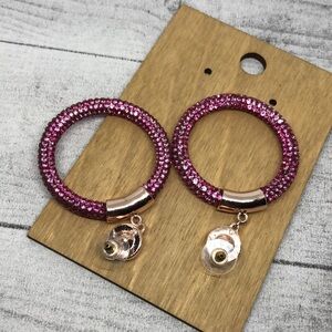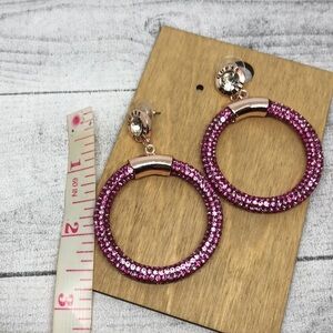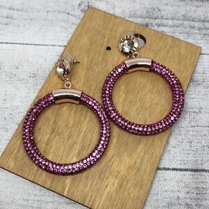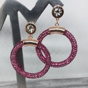 Guess logo pink rhinestone hoop dangle earrings statement.