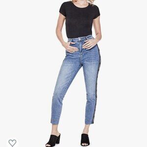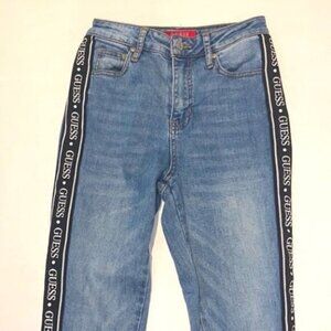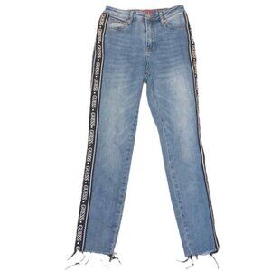 Guess medium wash logo tape high waisted skinny jeans size 24