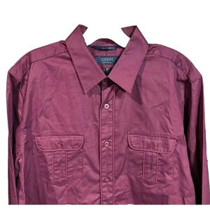 Guess men's long sleeve textured button down shirt red Size Large Occasion Party