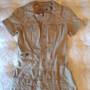 Guess dress , beige, stretch, accentuates figure can be worn with casual or dressy shoes. It's been worn once. Negotiable price
