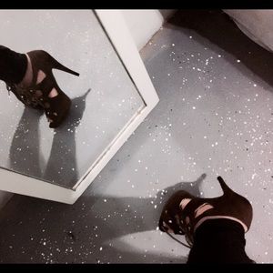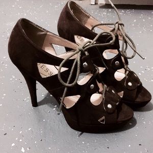 chocolate brown suede high heels in a size 6 they come with gladiator laces and are open toe I used maybe 3x there in really good condition if any questions just ask