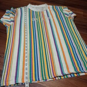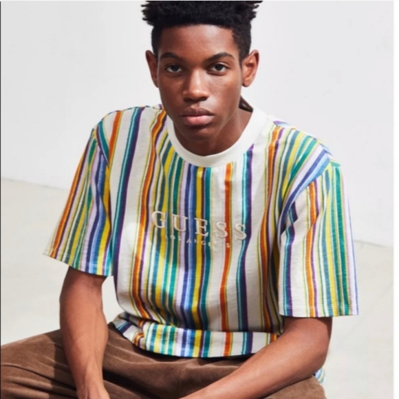Guess originals embroidered spell out logo multicolor striped tee retro style