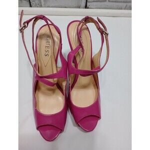 Guess pink shine hight strappy womens heel sandals size 9M. Style WGlarkin-C pre-owned. Good condition